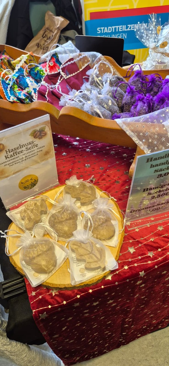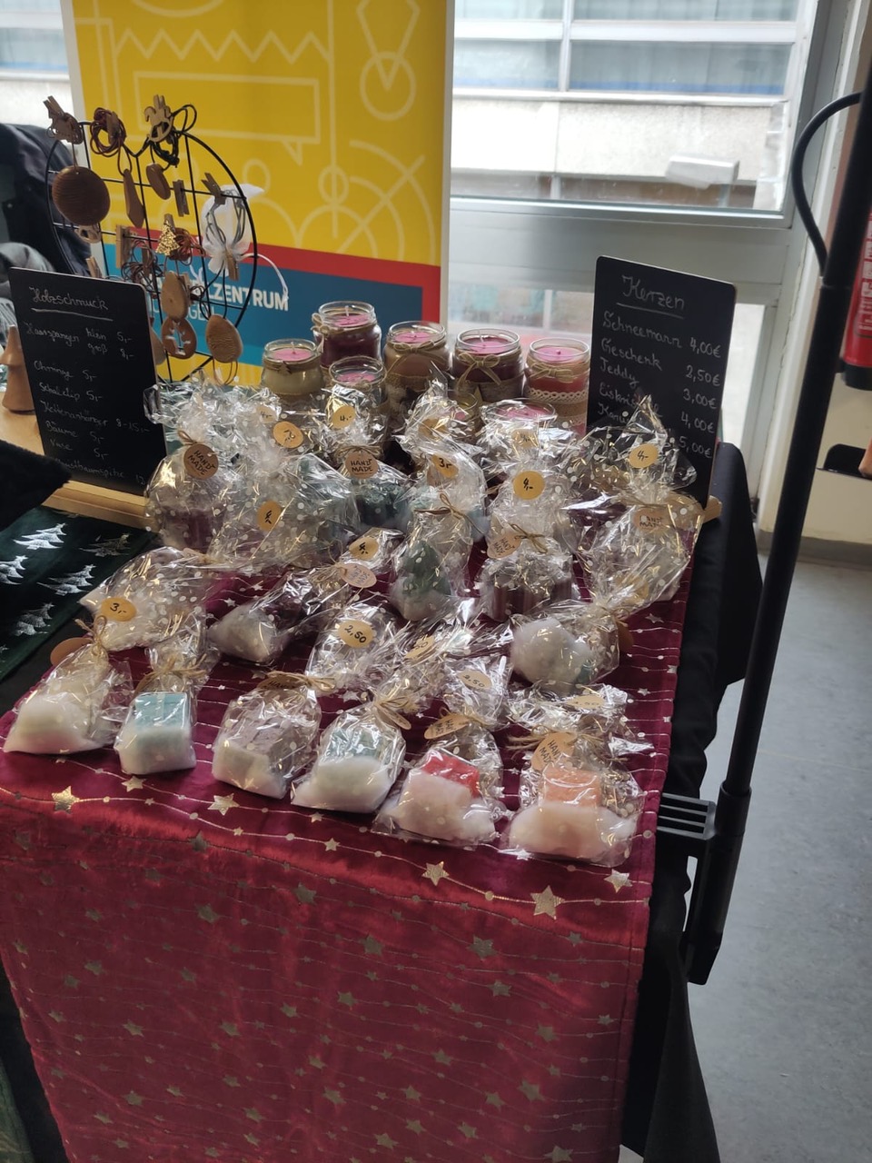 Mit viel Liebe haben wir unsere handgemachten Produkte präsentiert, von Kerzen und Seifen über Holzschmuck bis hin zu kleinen Dekoartikeln und duftenden Lavendelsäckchen.